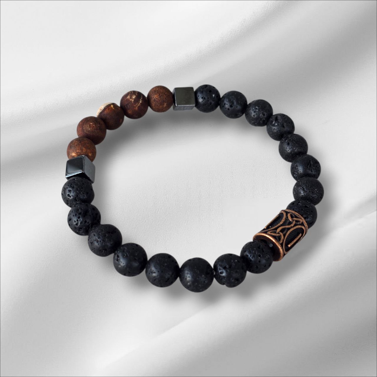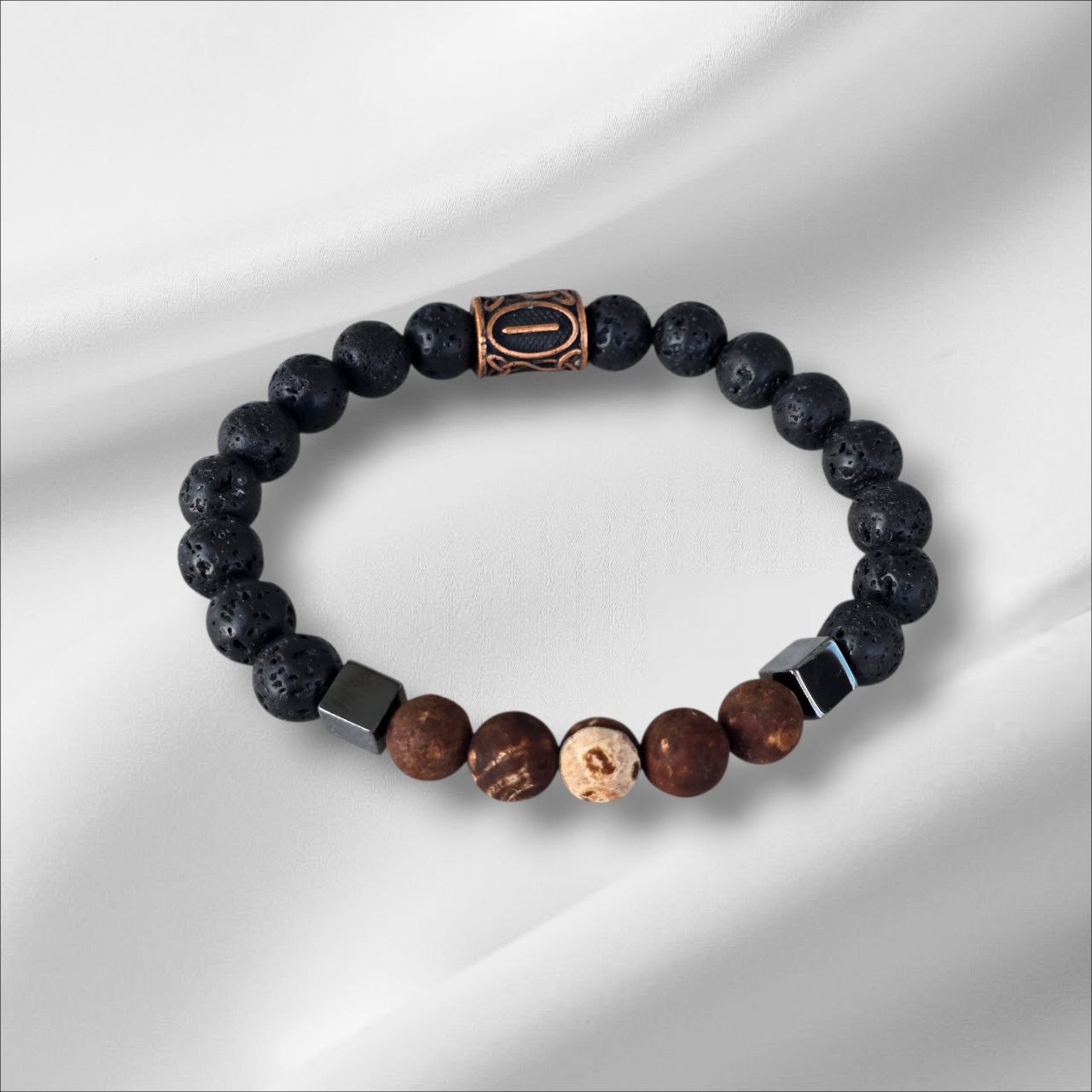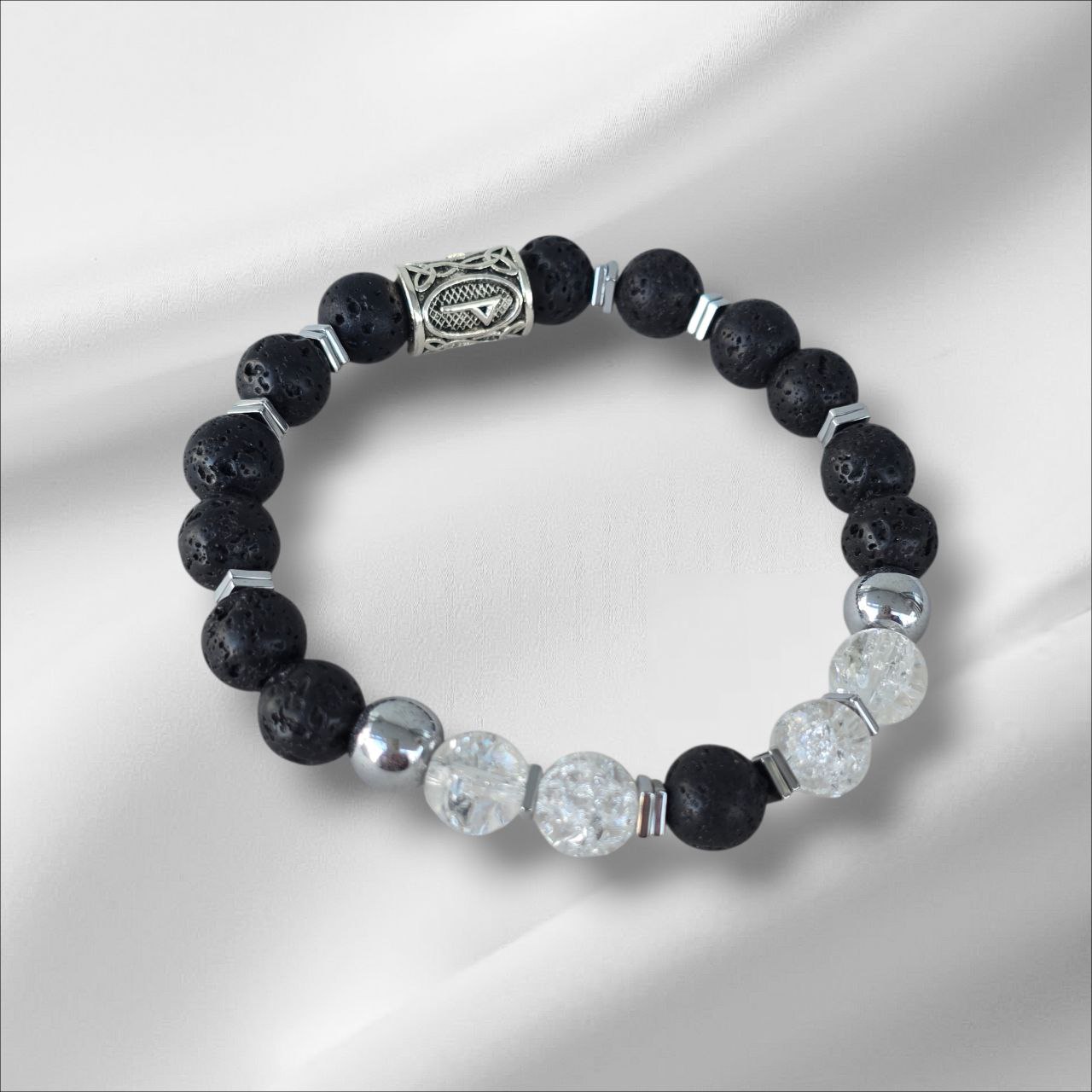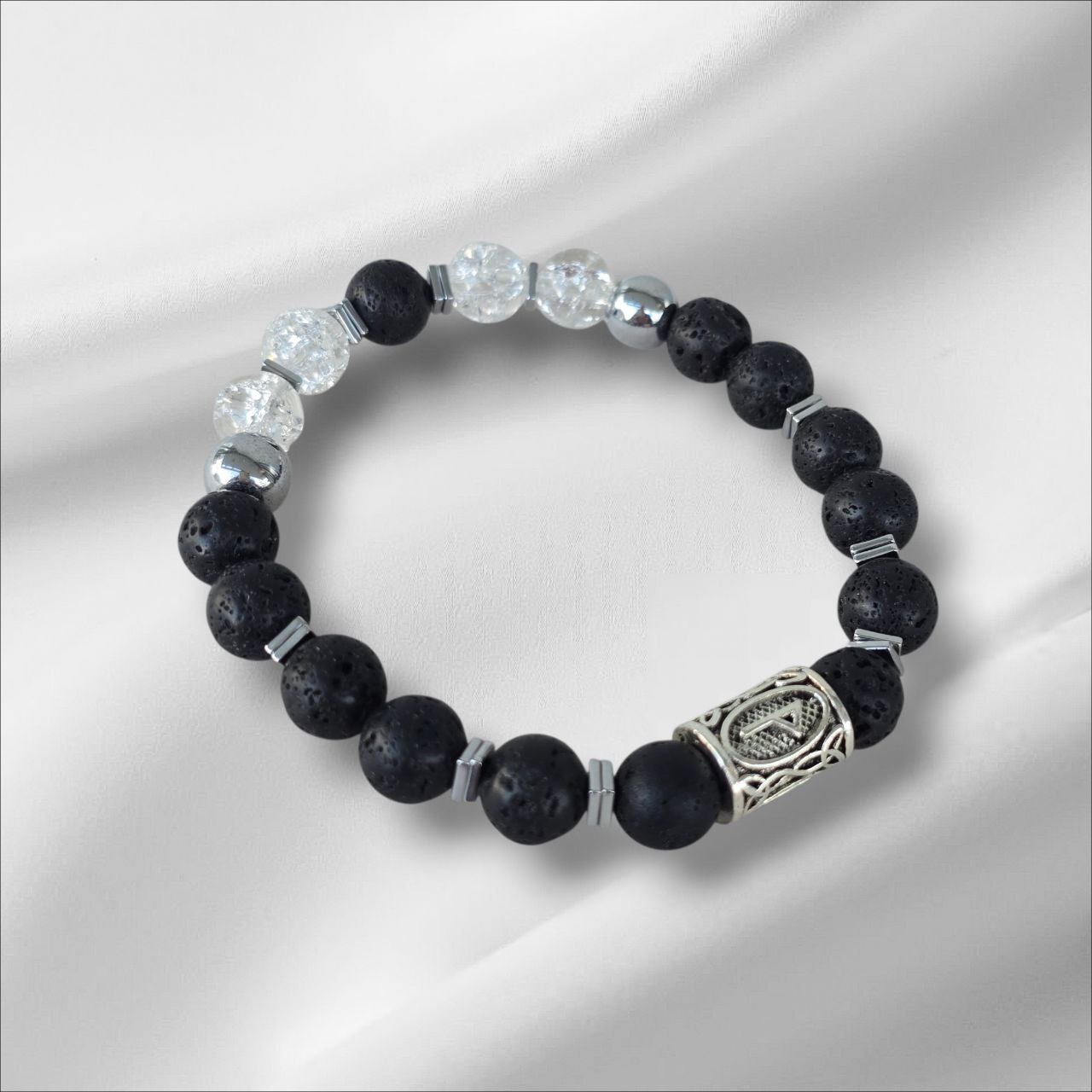 Eiwaz rune bracelet with Lava Stone, Dalmatian Jasper and Hematite.