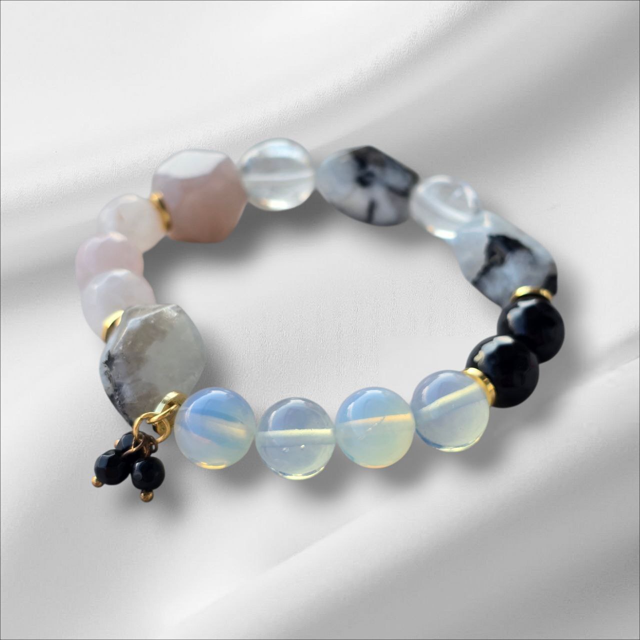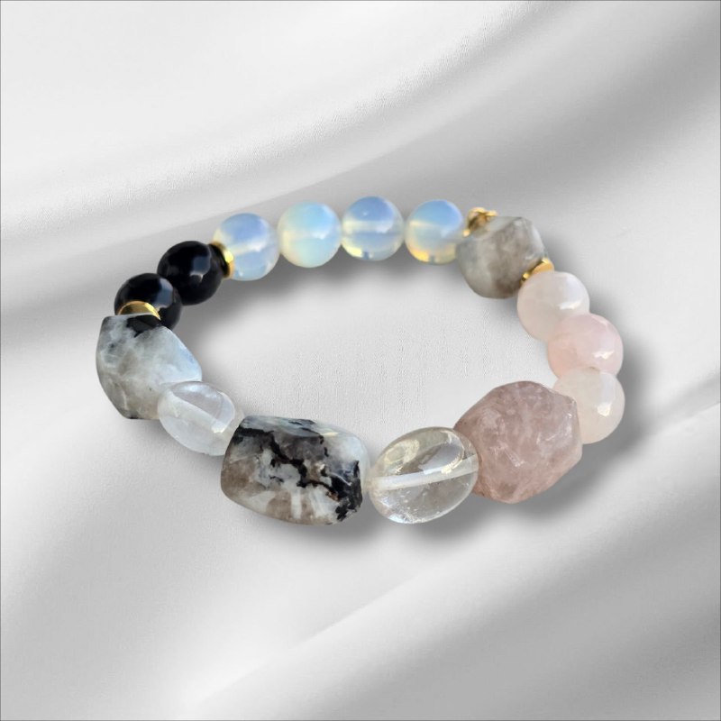 Limited edition bracelet with Moonstone, Clear Quartz, Onyx and Opal.