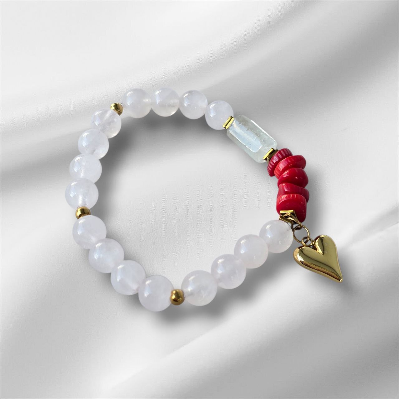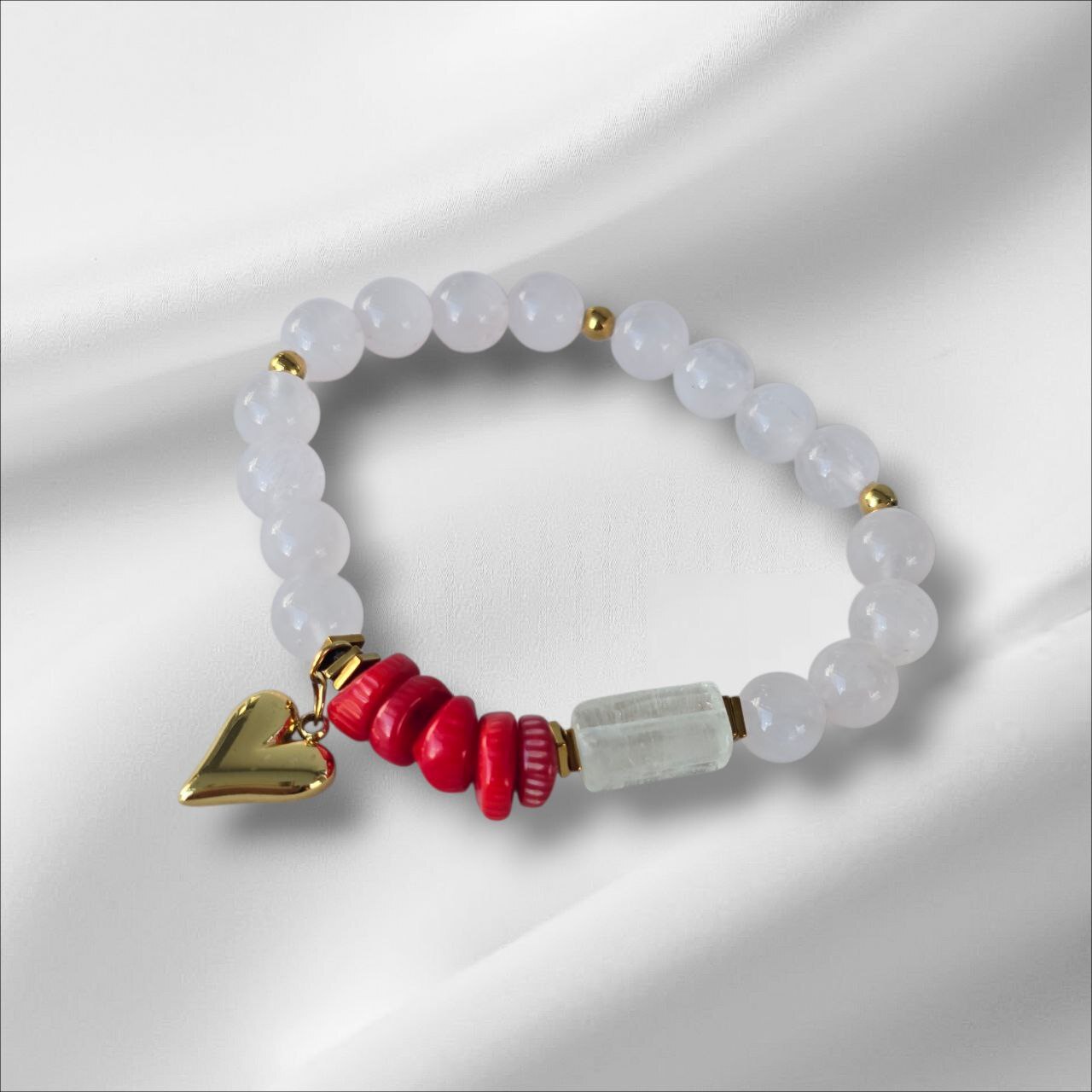 Finished with elegant stainless steel elements and a gold heart charm, this piece becomes a symbol of love — both for yourself and the world around you.
