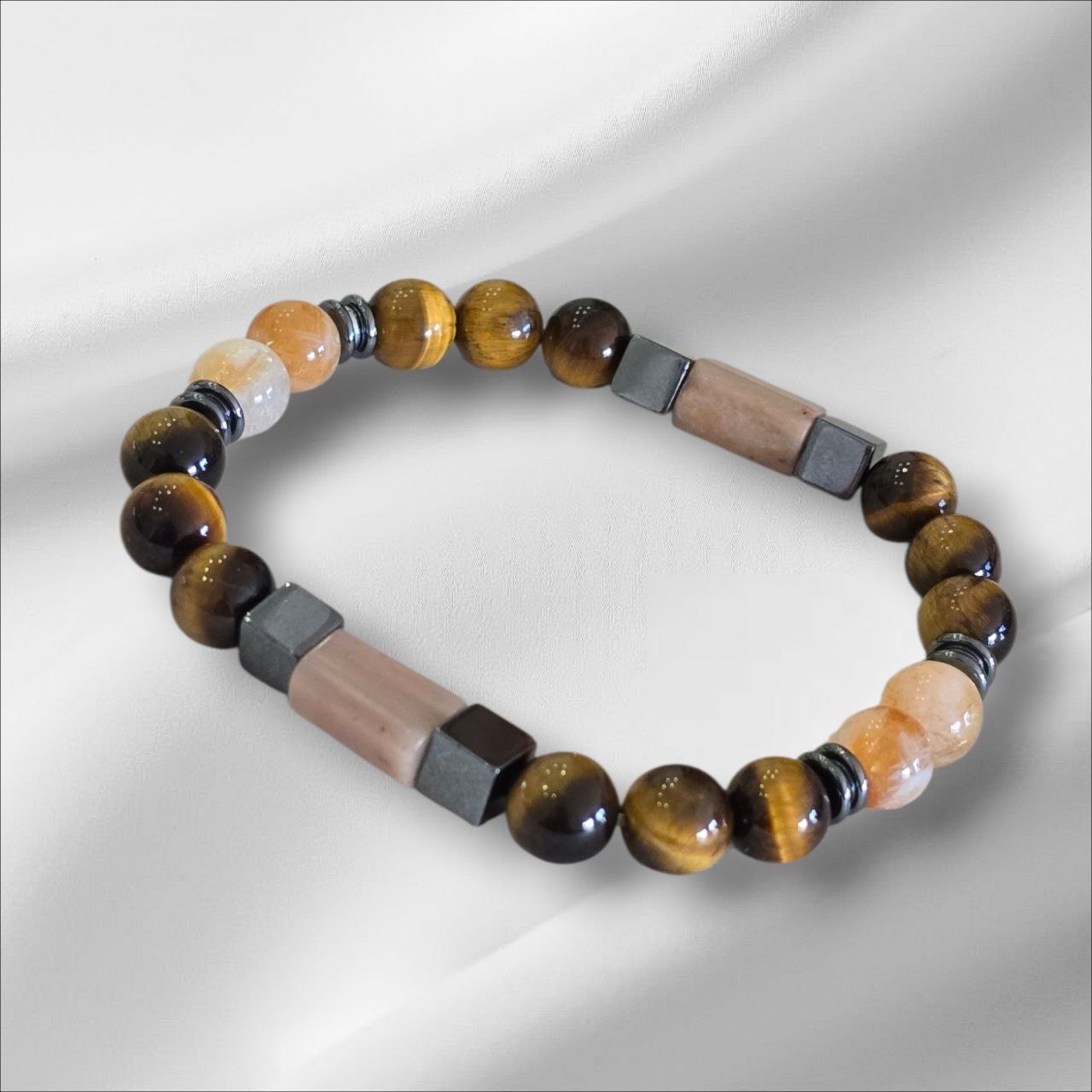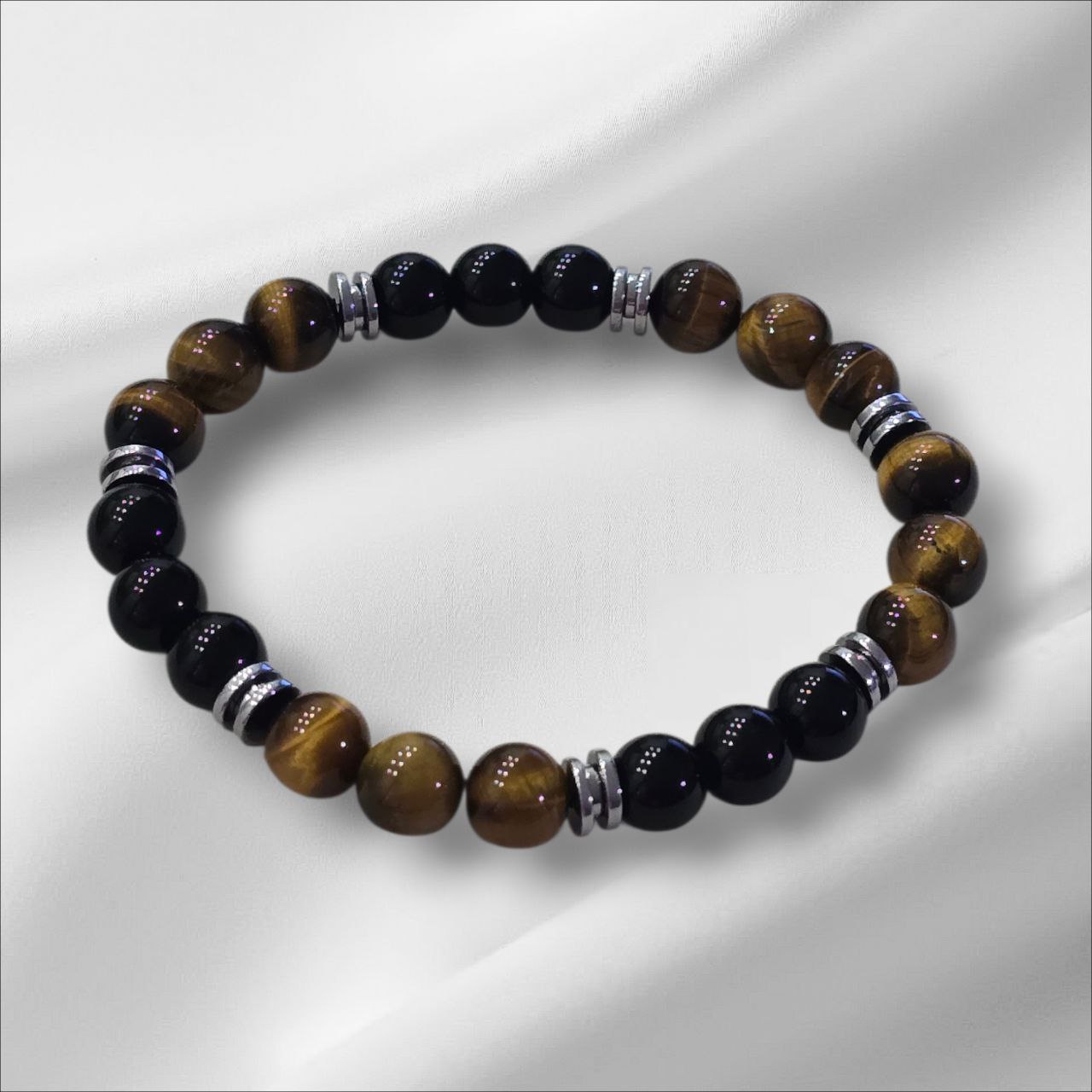 Men’s bracelet with Onyx, Tiger’s Eye and a touch of Hematite. Designed to strengthen inner power, protect your energy and enhance confidence. A meaningful piece for men who value focus, stability and grounded strength.