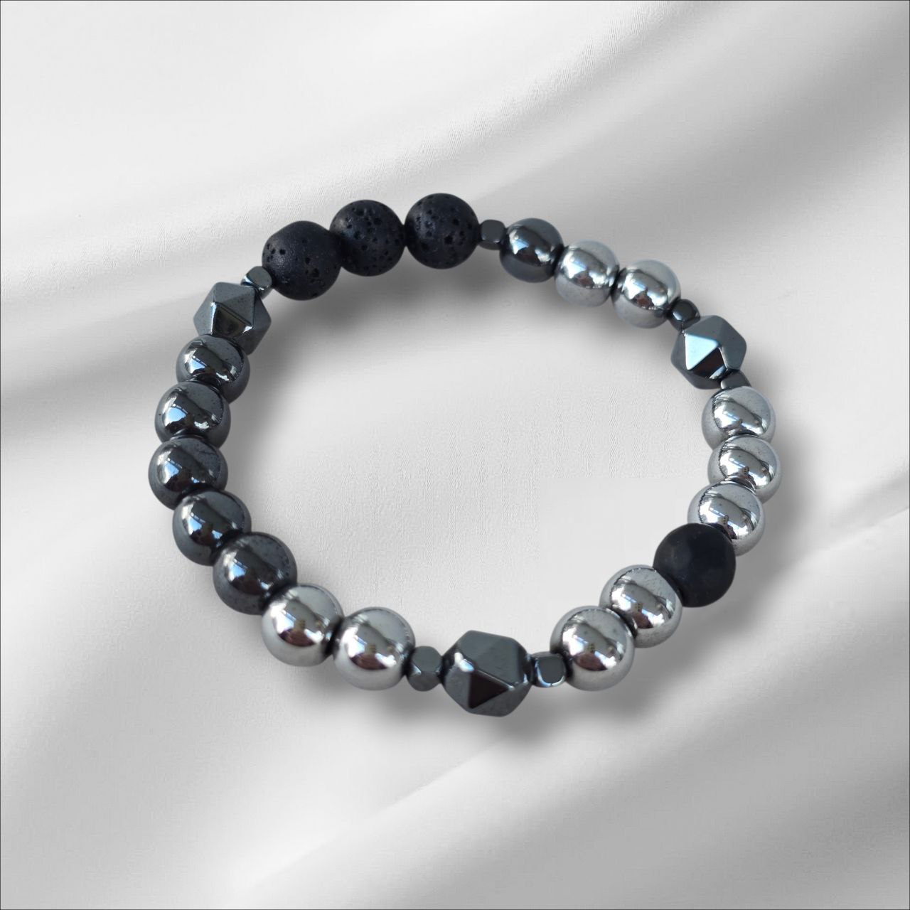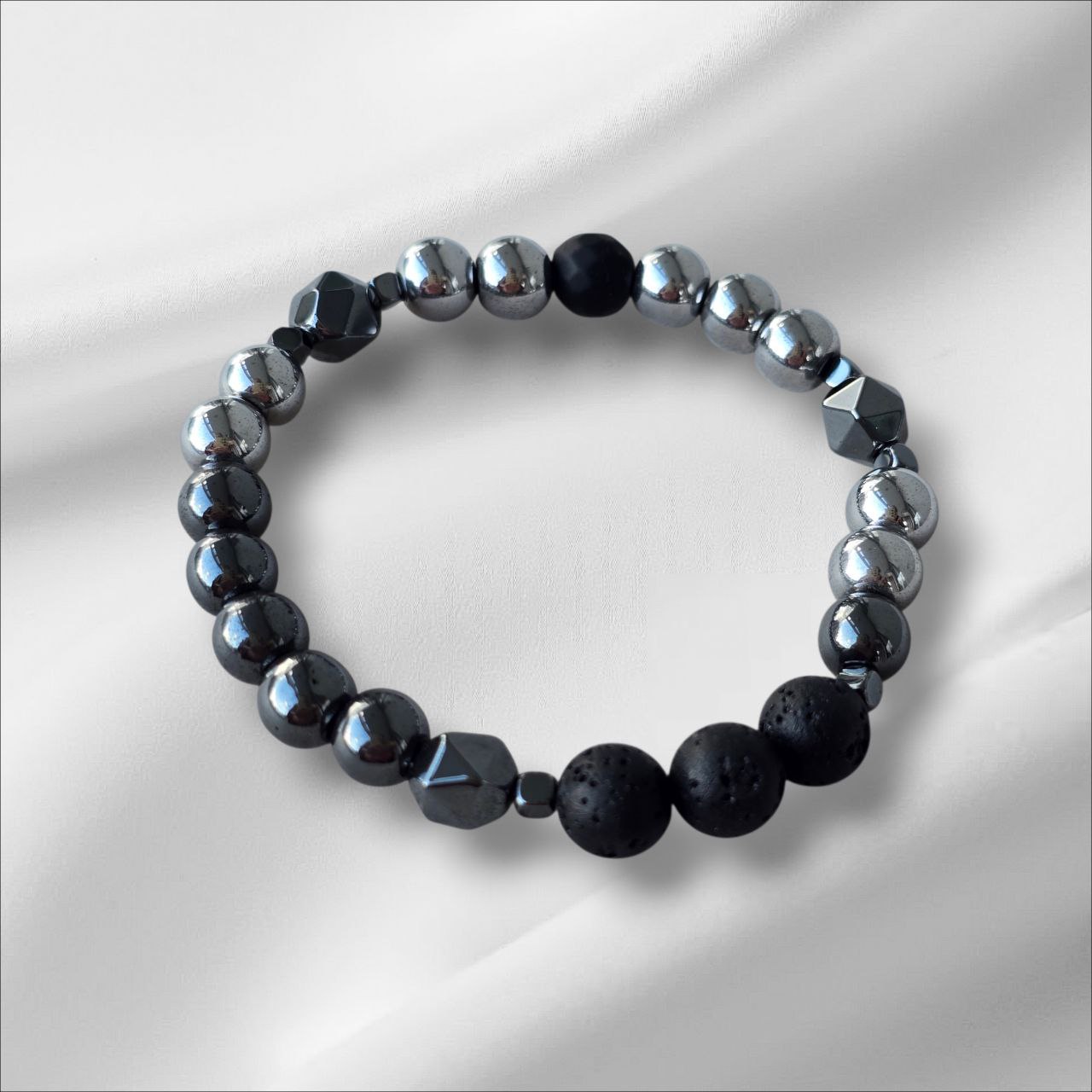 Hematite bracelet with Onyx and Lava Stone. Designed to strengthen your inner core, protect your energy and enhance stability. A meaningful piece for those who value resilience, focus and grounded power.