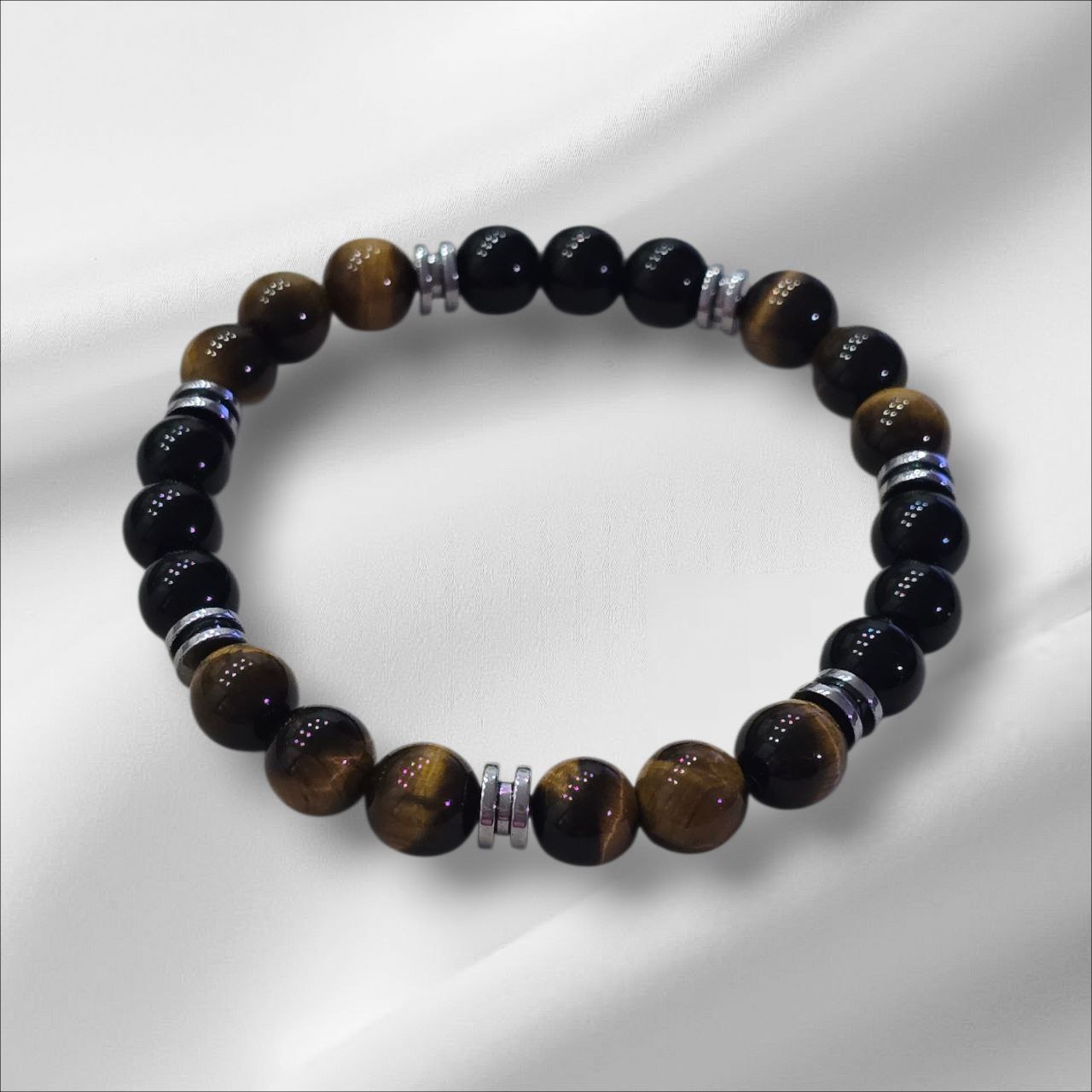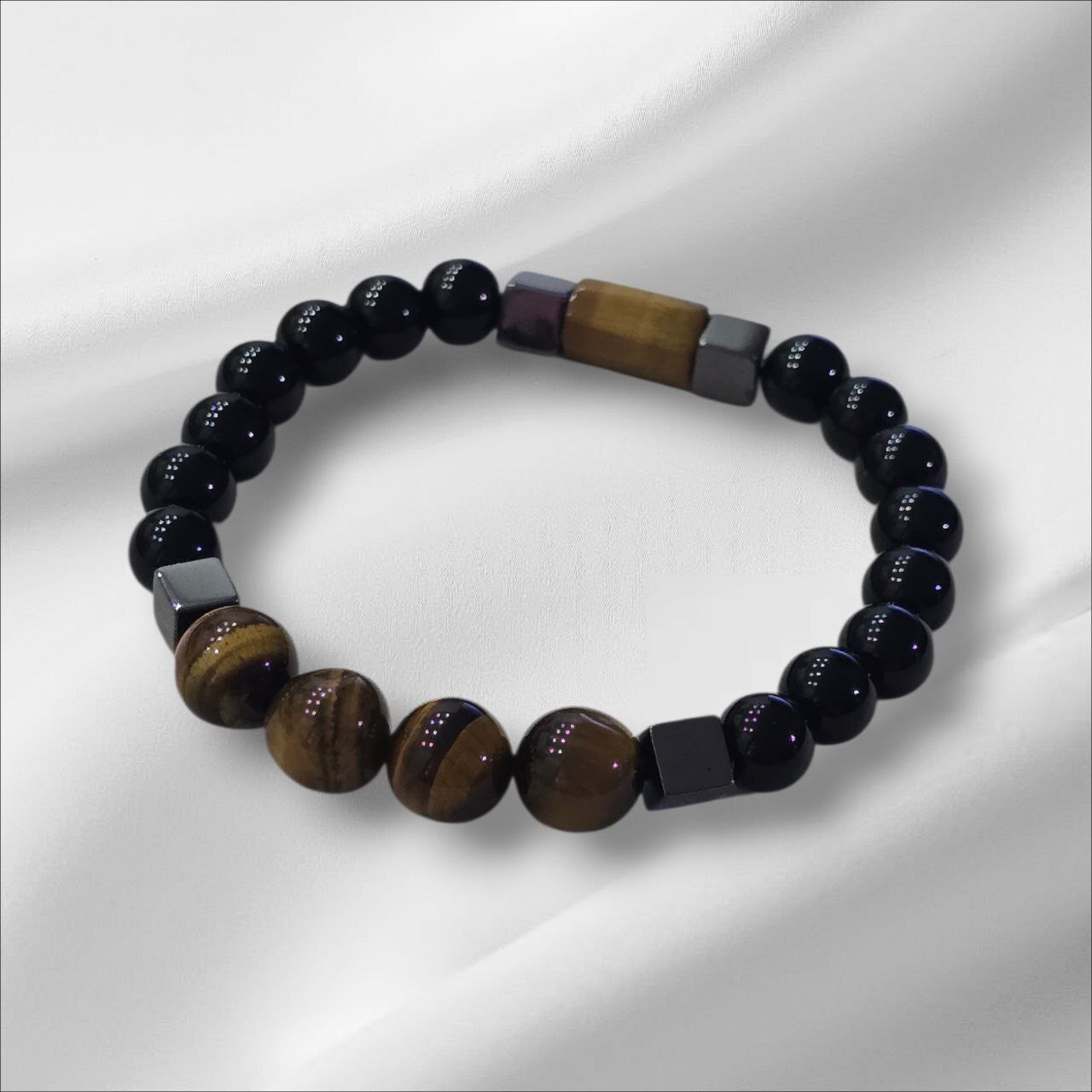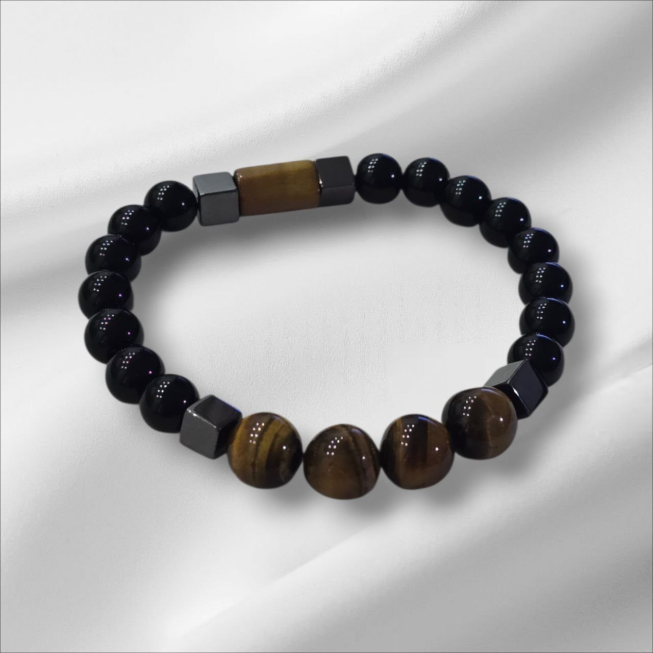 Men's bracelet with Hematite, Onyx, Lava Stone and Tiger's Eye. Designed to strengthen inner power, protect your energy and enhance confidence. A meaningful piece for men who value stability, focus and grounded strength.