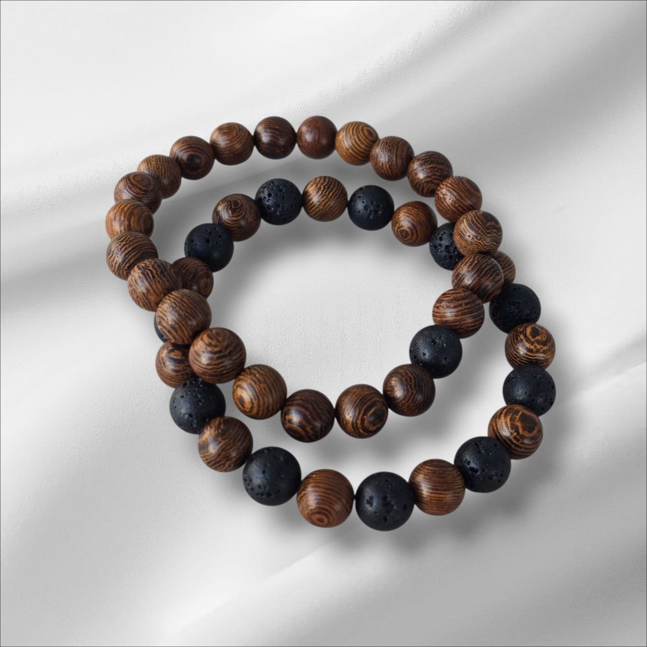 Men's bracelet set with natural Wood and Lava Stone. Designed to ground your energy, restore balance and strengthen your natural power. A meaningful set for men who value simplicity, strength and connection to nature.