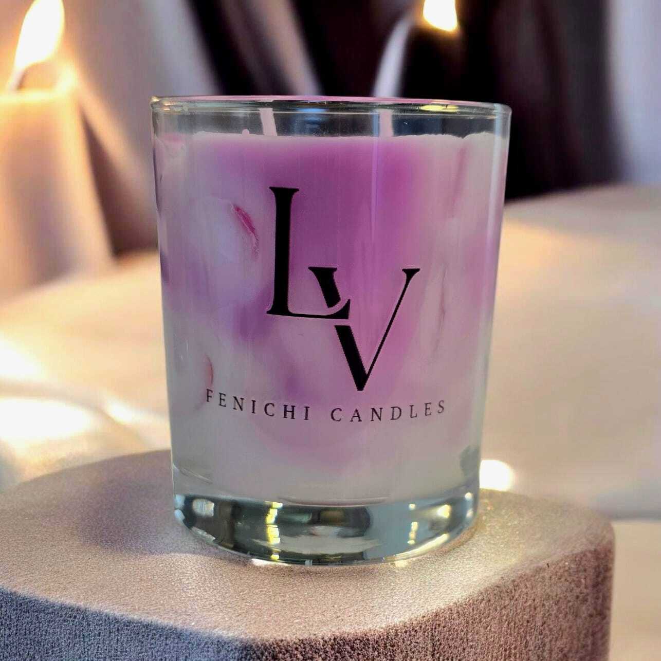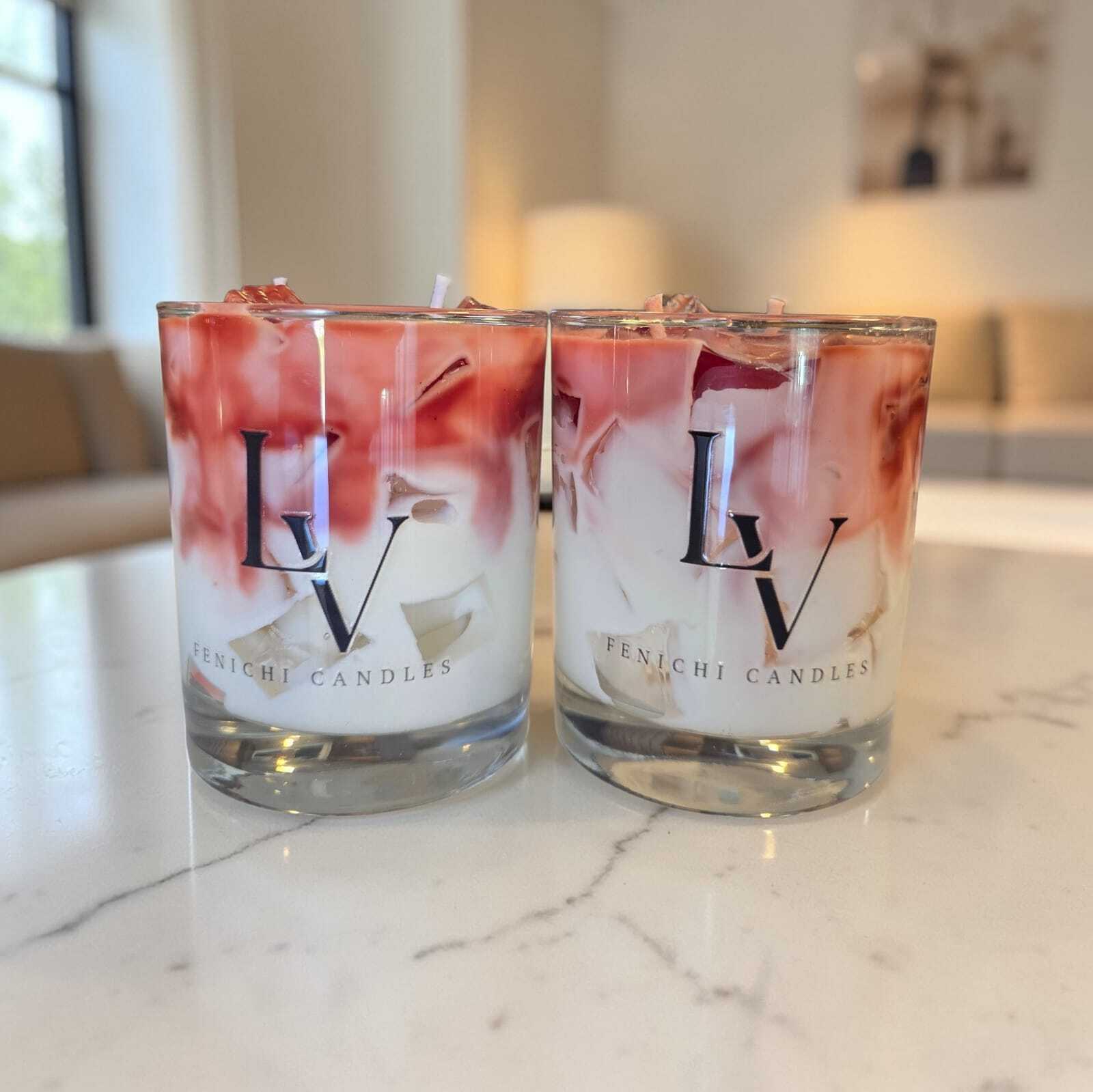 Handmade custom-made 100% Soy Wax candle with a soft rose scent.( Limited edition)