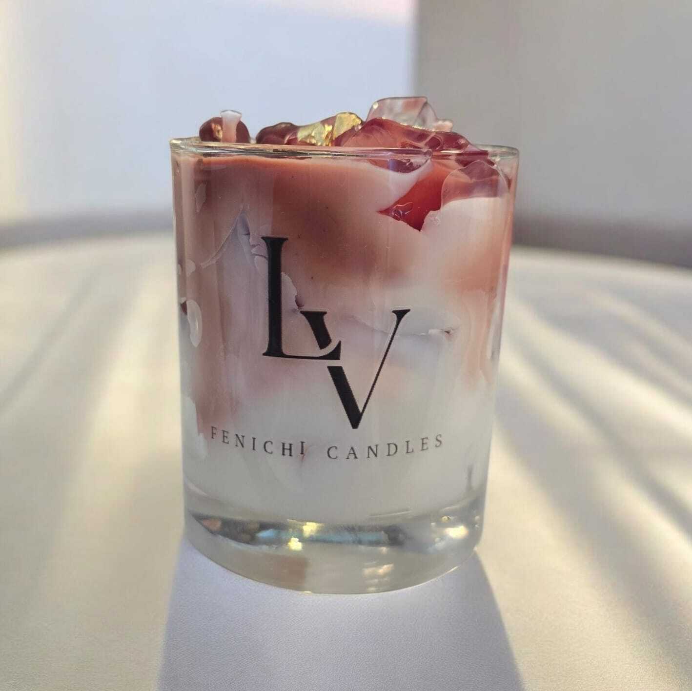 Handmade 100% Soy wax candle with a delicate rose fragrance, designed to bring warmth, beauty and refined elegance into your space.