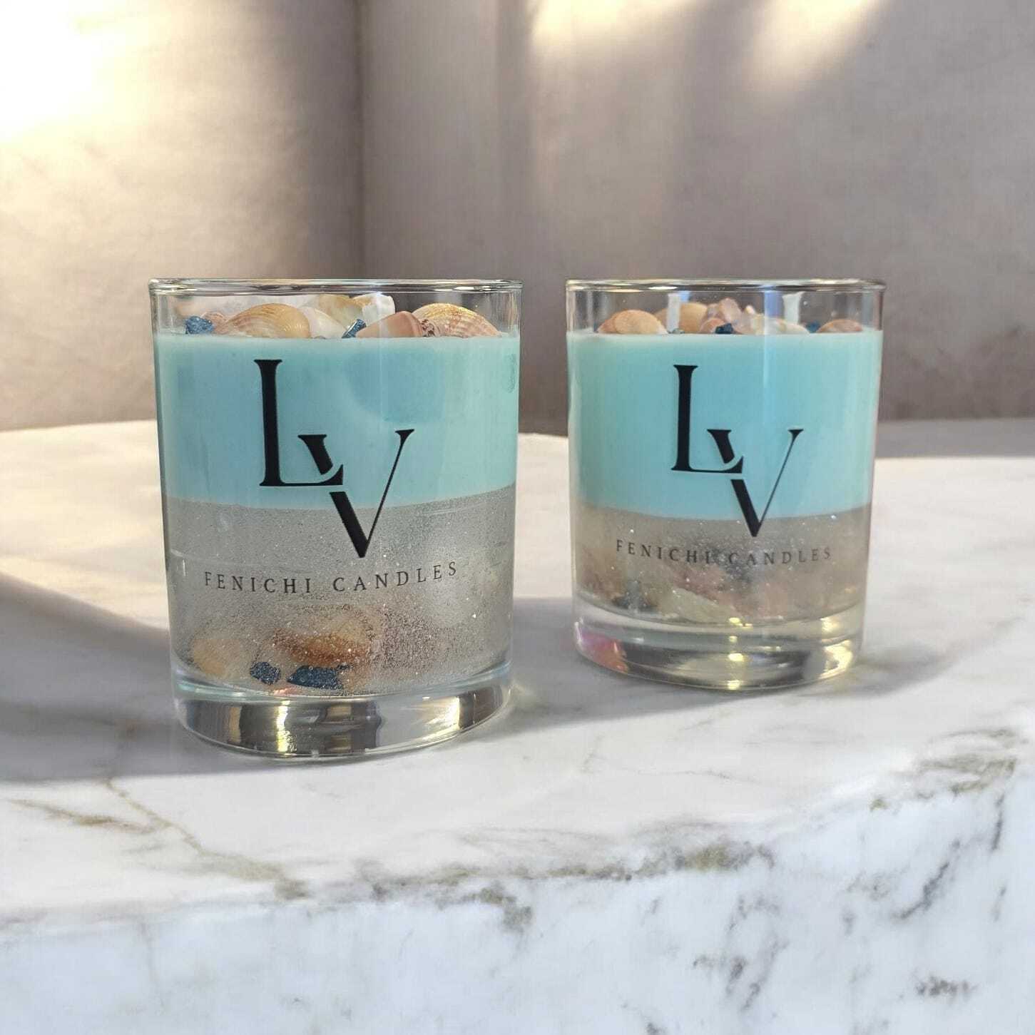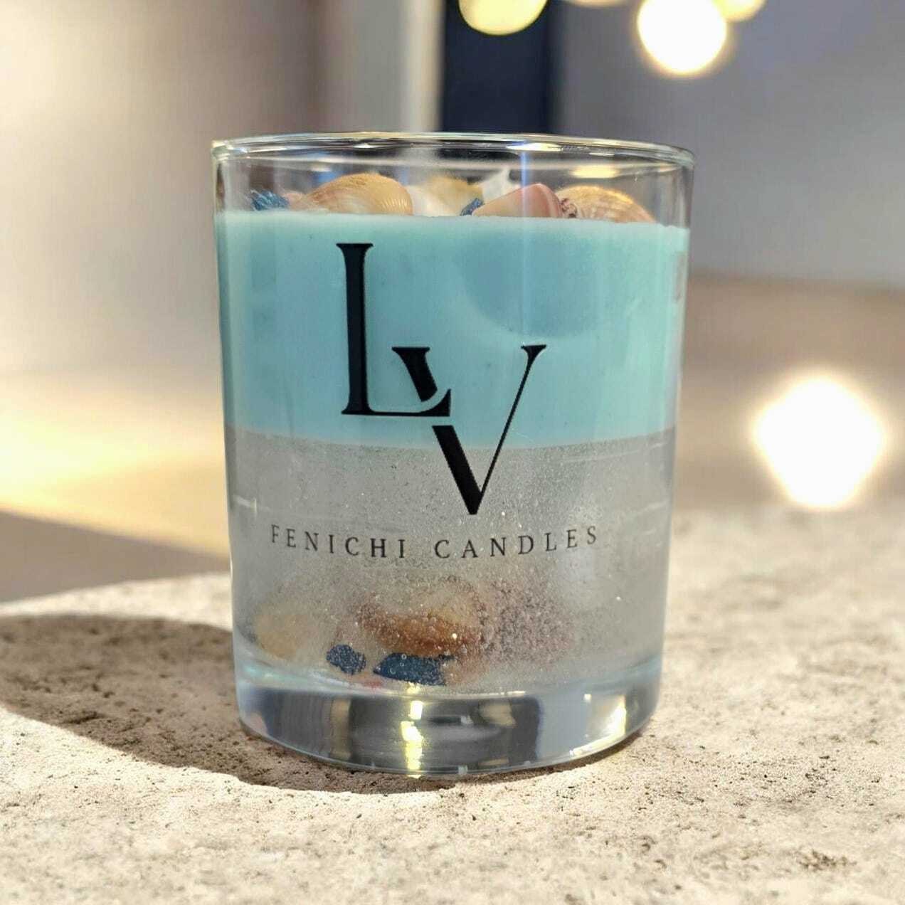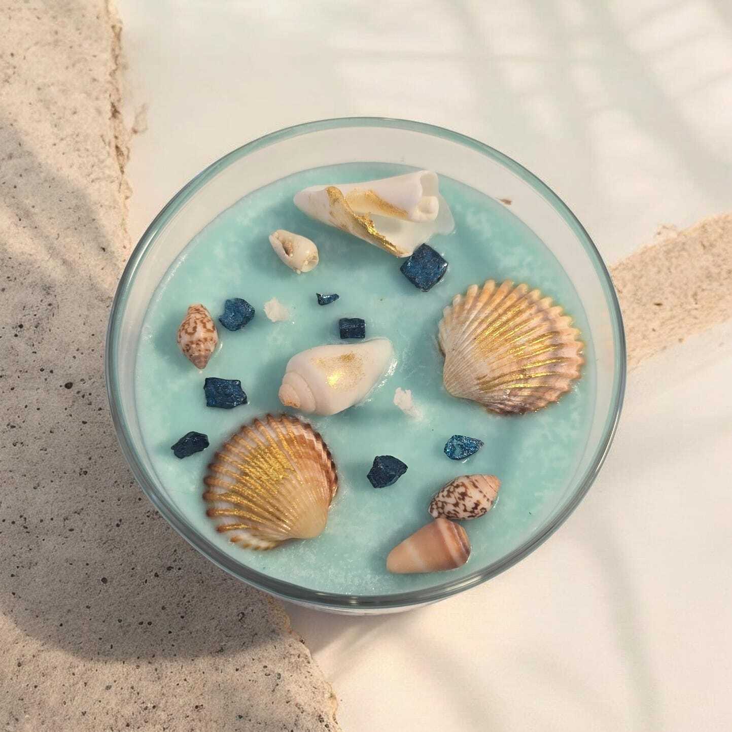 Handmade 100% Soy Wax candle with a fresh marine scent.