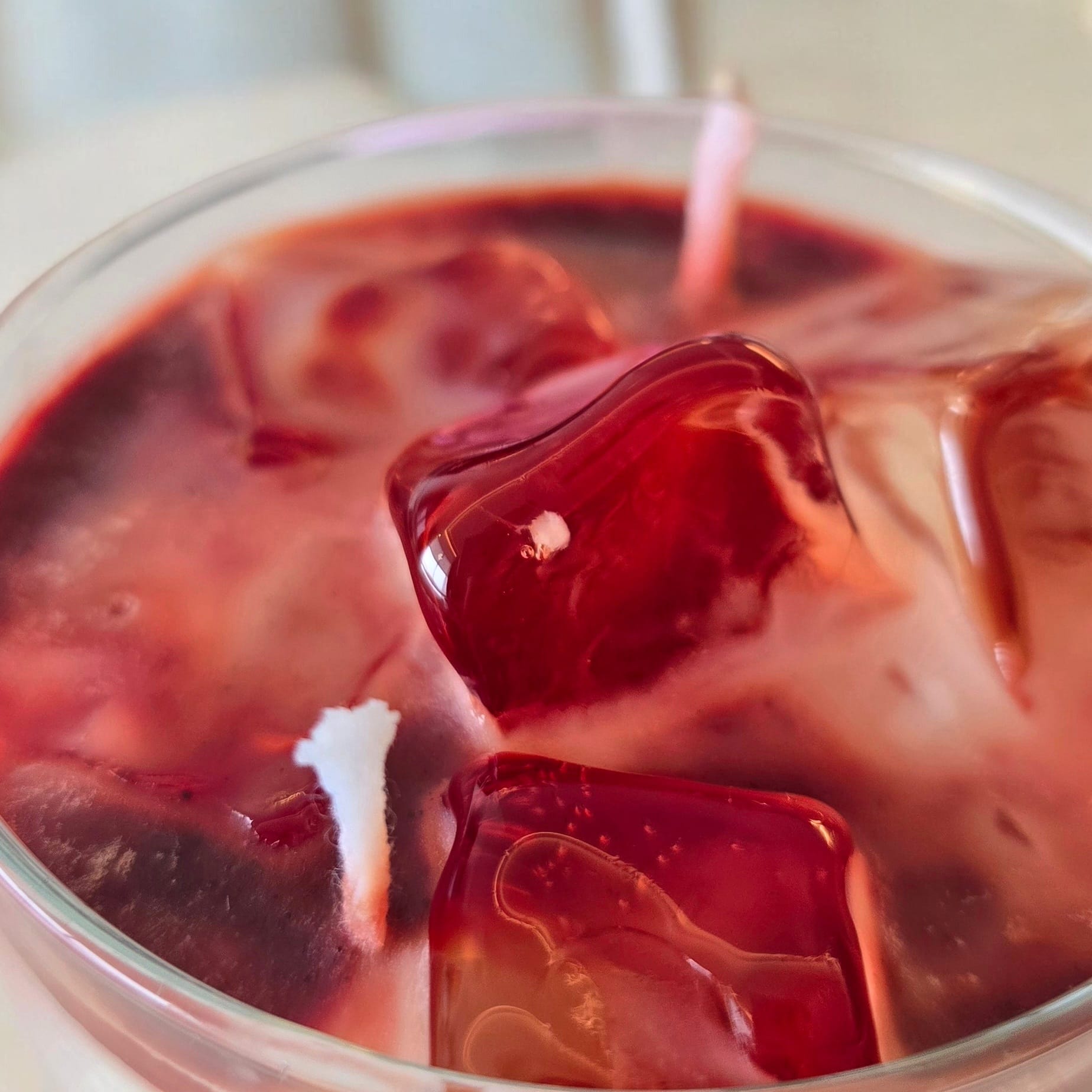 Wax: natural soy wax with decorative gel wax “ice cubes”