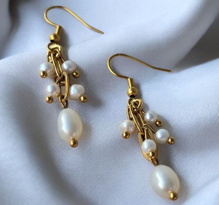 Designer earrings crafted from premium stainless steel and adorned with genuine natural pearls.