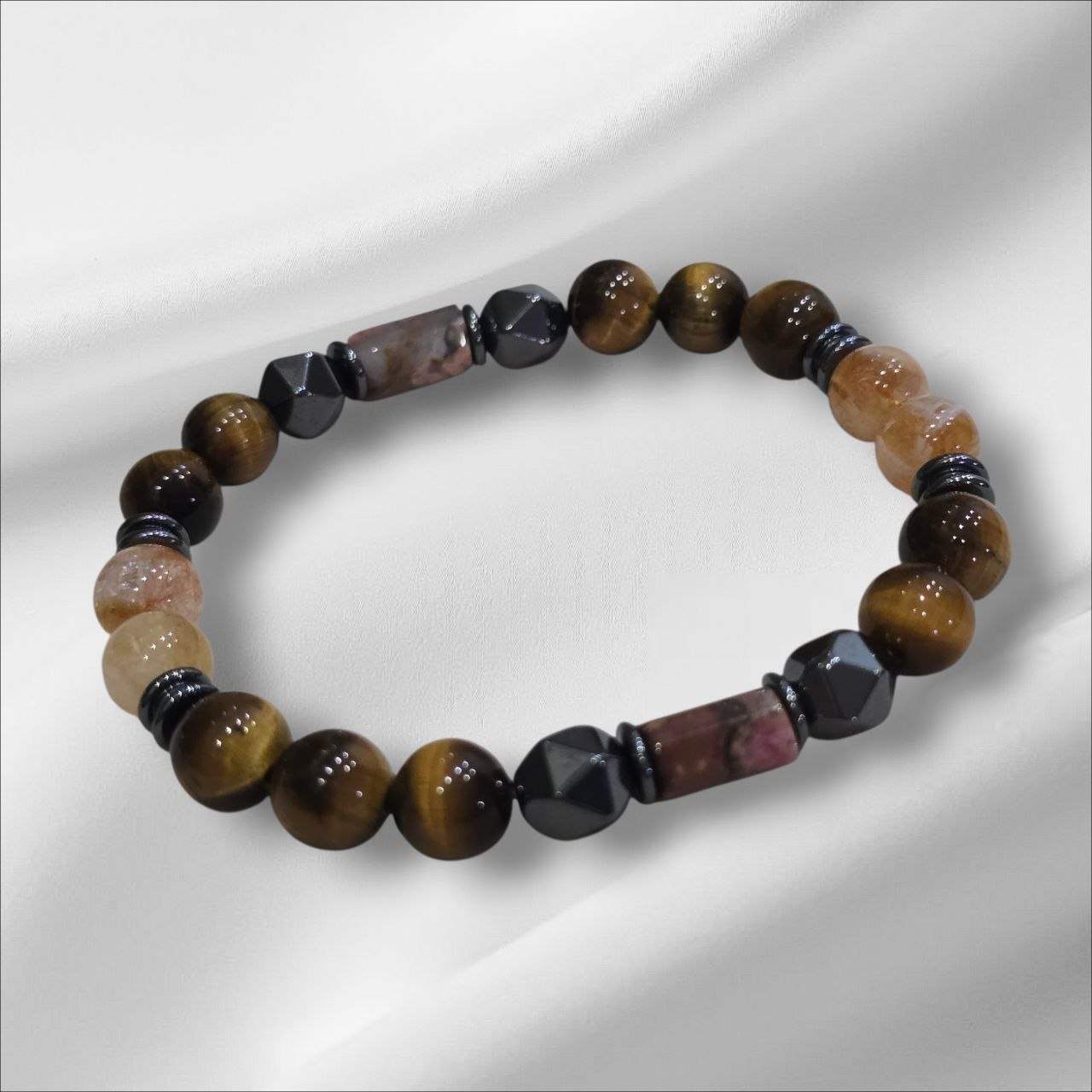 Men’s bracelet with Lava Stone, Tiger’s Eye and a touch of Hematite.