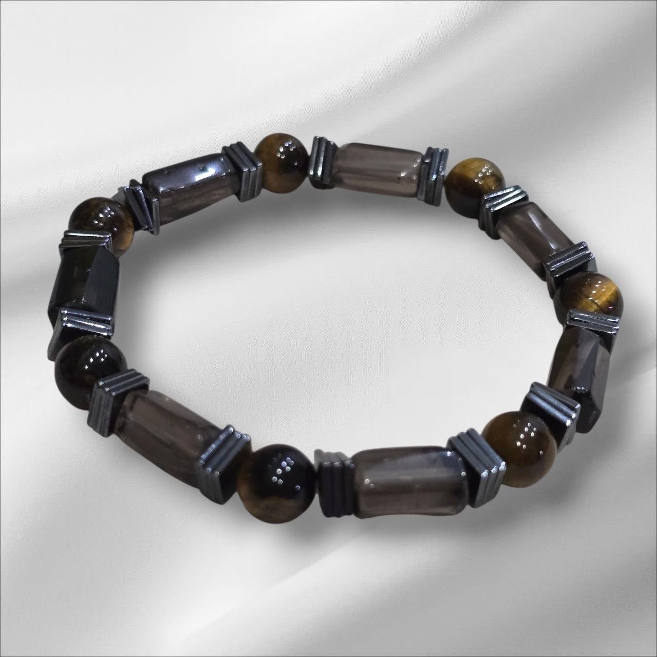 Men's bracelet with Hematite, Onyx, Lava Stone and Tiger's Eye. Designed to strengthen inner power, protect your energy and enhance confidence. A meaningful piece for men who value stability, focus and grounded strength.